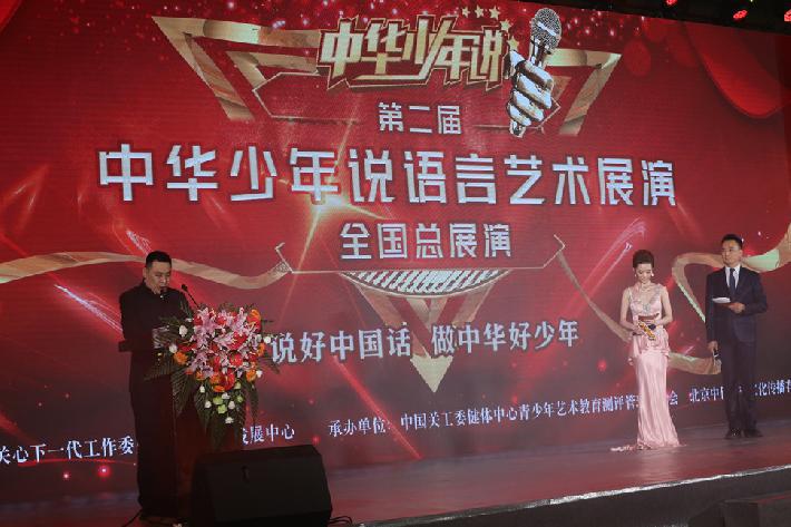 为深入贯彻习近平新时代中国特色社会主义思想和党的十九大精神,全面落实党的教育方针,围绕立德树人的根本任务,促进下一代德智体美全面发展,展示各地艺术教育的成果,由中国关心下一代工作委员会健康体育发展中心主办,中国关心下一代工作委员会健康体育发展中心青少年艺术教育测评管理委员会、北京中传艺德文化传播有限公司共同承办的第二届“中华少年说”语言艺术展演全国总展演暨颁奖典礼10月5日下午在北京九华山庄会议中心圆满闭幕。